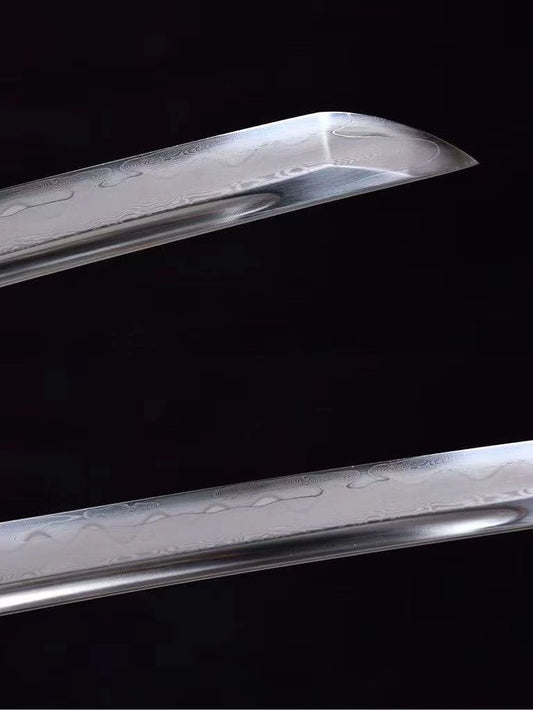 Katana Shiraha — Acier T10 — Hamon réel & saya blanche veinée