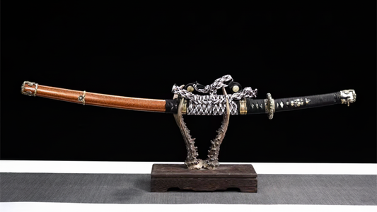 Katana Tamashii — Trempe à l'argile — Saya incrustée de nacre gravée